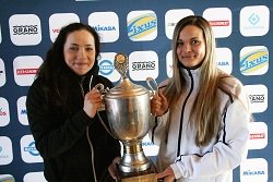 Roosa Koskelo (LP Viesti) ja Saana Koljonen (HPK) taistelevat pokaalista joukkueiden liberoina.