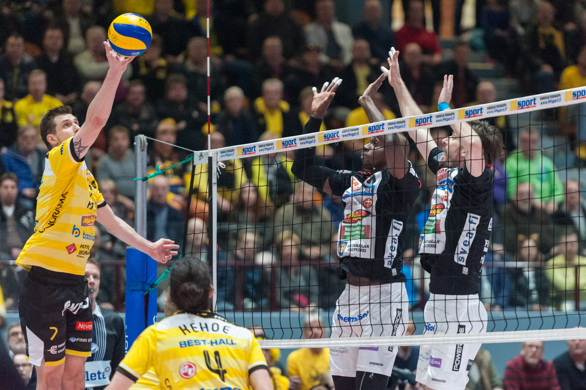 Ensimmäinen finaali meni Kokkolan Tiikereille: 3-0 (25-19, 25-22, 25-22). Tiikereiden rutiini riitti viemään ensimmäisen erän selvin numeroin, toisen erän sen tasaisuudesta huolimatta ja kolmannen VaLePan alun johtoasemasta huolimatta.