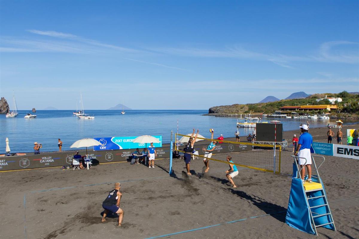 Alle 20-vuotiaiden EM-biitsit ovat käynnissä Italian Vulcanossa, Sisilian pohjoispuolen pikkusaarella. Lämpö on käväissyt 35 asteen paremmalla puolella.