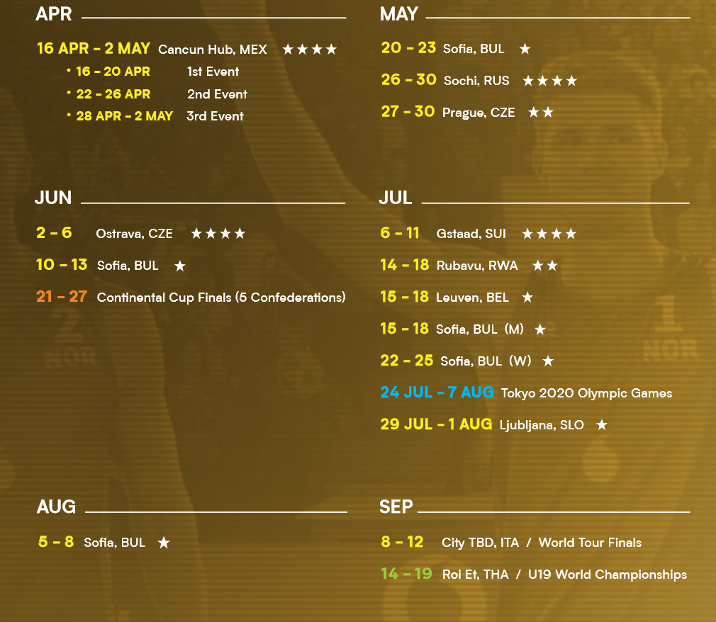 Maailmankiertue jatkuu Qatarin turnauksen jälkeen Meksikossa kolmen turnauksen kuplalla huhtikuussa. Tarkoituksena on antaa turvallinen mahdollisuus joukkueille valmistautua olympialaisiin.